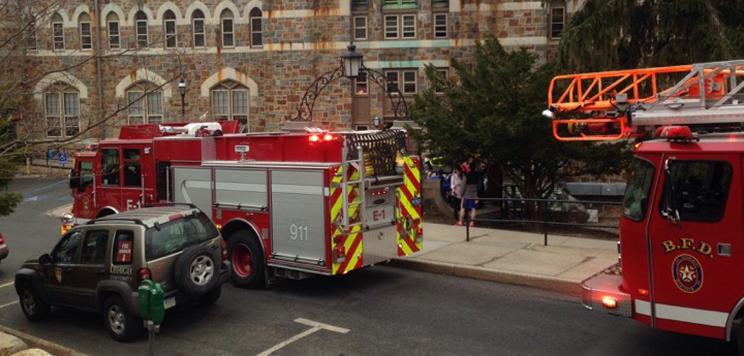 Four Bethlehem Fire Department trucks and one fire emergency car surrounded the entrance of the University Center this afternoon after the fire alarms went off.