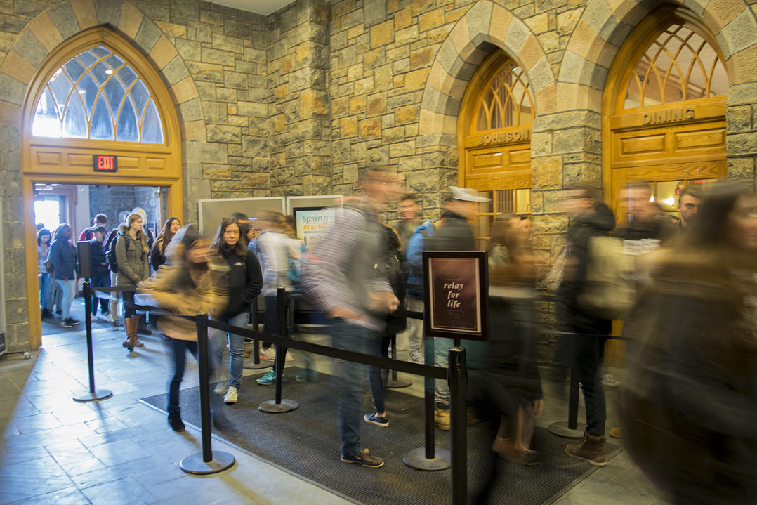 Logan Herr, ’18, said he frequently eats meals at the dining halls during peak hours and usually waits 10 to 15 minutes just to enter the dining hall itself. He said he would appreciate a shorter wait time so he can get food without worrying about being late to class.