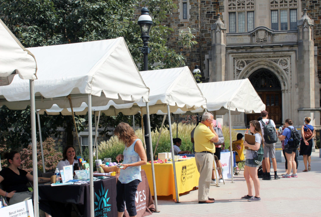 Campus offices and organizations involved with health-related issues set up booths in front of the University Center on Thursday, Sept. 12, at the fourth annual Health and Safety Fair. The fair provided students with important health information and the chance to win prizes and pet dogs and police horses.