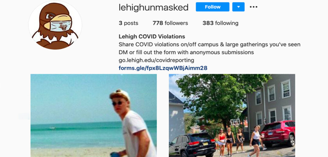 The Instagram account @lehighunmasked, run by an anonymous source, encourages students to submit COVID-19 violations seen on and off-campus, which the account then reposts.
