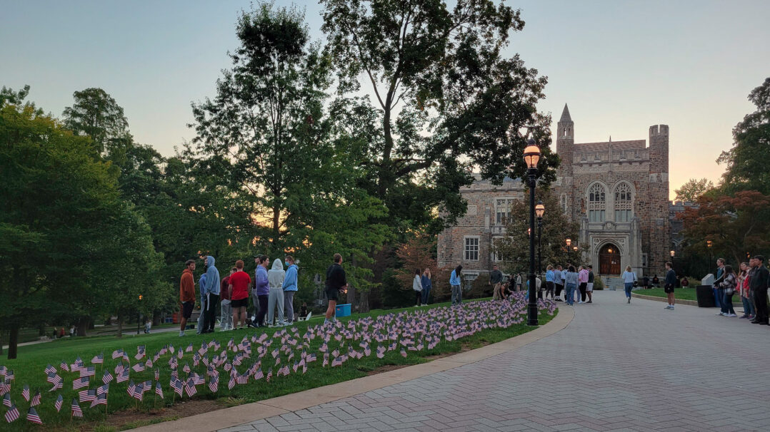 Every year, 2,977 flags are planted on the University Center lawn by students to commemorate the attacks that took place on September 11, 2001.