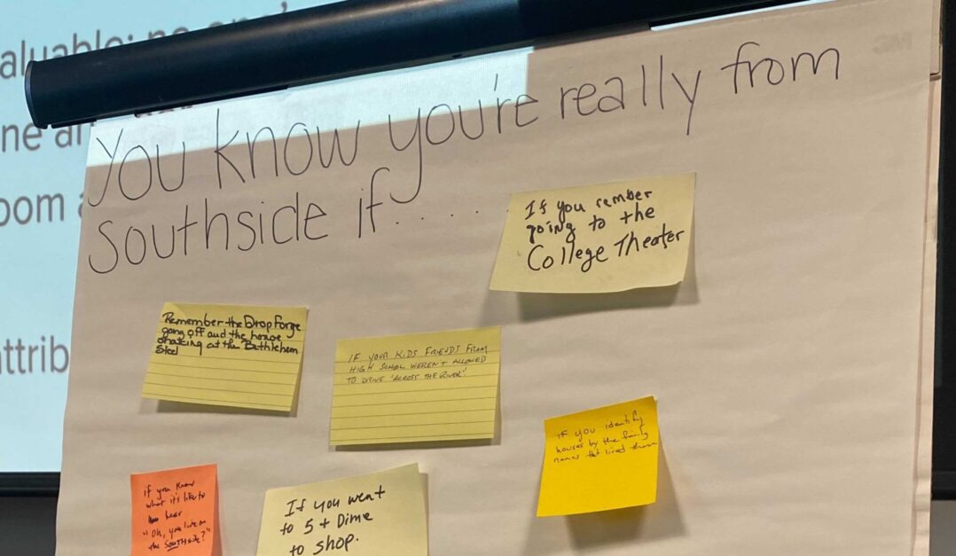 One easle titled “You know you’re really from the South Side if…” was filled with sticky note responses including “if you identify houses by the family names that lived there,” and “if you can’t find parking on your block.”