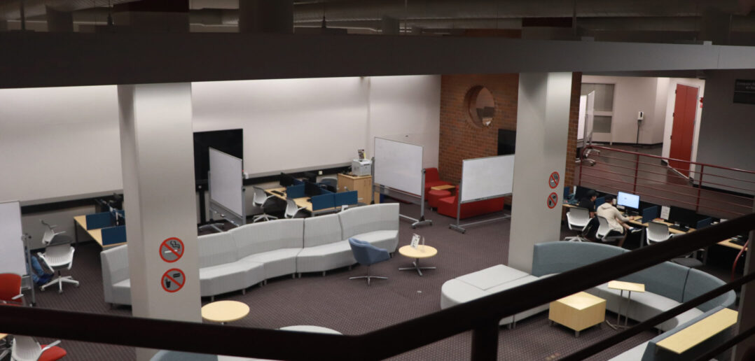 After collaborating with a group from the Student Senate, Reihman said LTS decided to focus on creating a collaborative and flexible space with new seating, built-in mobile chargers, Windows computers and more portable whiteboards.