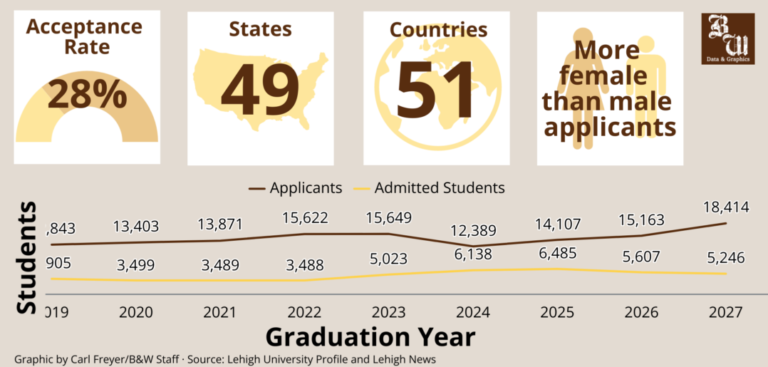Fewer students were admitted to Lehigh University for the third year in a row. The class of 2027’s acceptance rate is 28%. The rate has been steadily decreasing since the class of 2024’s spike of 49.5%.